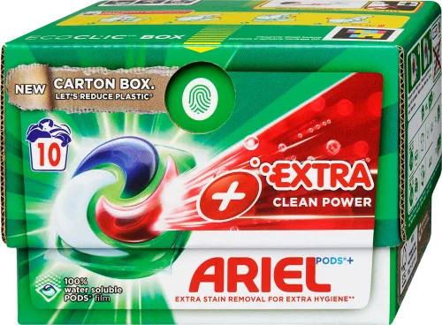 Ariel All-in-1 PODS Extra Clean Power mosókapszula mélytisztító és extra folteltávolító hatással. A kapszula piros rekesze fokozott folteltávolító hatással bír Ariel PODS Mountain Spring mosókapszulához képest . Formulája révén eltünteti a foltokat, ragyogóvá varázsolja a ruhákat, felfrissíti a textíliákat, óvja a szöveteket még alacsonyabb hőfokon is. Cool Clean technológiájának köszönhetően a kapszula hideg vízben is szinte azonnal feloldódik és kifejti tisztító hatását.