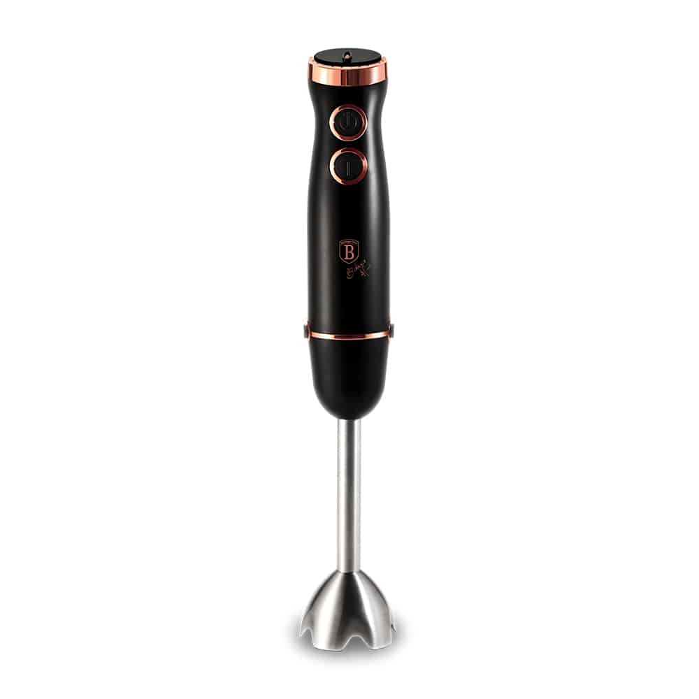 A Botmixer (500 W) a Black Rose Collection része, amely nemcsak a konyhai munkát könnyíti meg, hanem stílusos megjelenésével is lenyűgöz. Ez a botmixer a modern konyhák elengedhetetlen eszköze, amelyet nem kell a fiók mélyére rejteni, hiszen a fekete és rose gold színkombinációja bármely konyhapulton megállja a helyét.