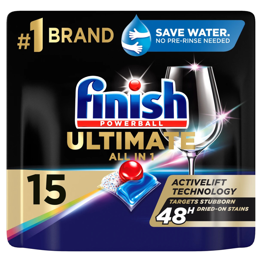 A Finish Ultimate All In One kapszula elhozza az Ultimate tisztaságot és ragyogást mosogatógépébe. 3 gyorsan feloldó kamra, amely még az ökociklusban is eredményes. Az új formulánk zsírtalanít, a rászáradt ételmaradékokat célozza és a Finish folyékony powerball az ultimate csillogást biztosítja. Csomagolásmentes, biológiailag lebomló, 100%-ban vízben oldódó bevonattal.