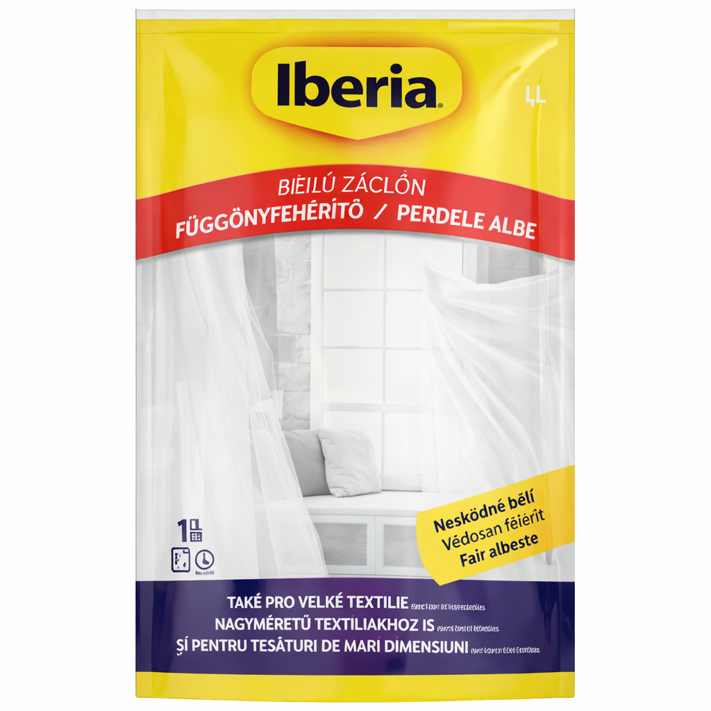 Az Iberia függönyfehérítő speciális adalékanyag fehér és színes függönyökhöz. Megóvja a függönyöket a portól és a kellemetlen szagoktól, világos és ragyogó színt biztosít. Vasalás nélkül is tartást ad az anyagoknak.