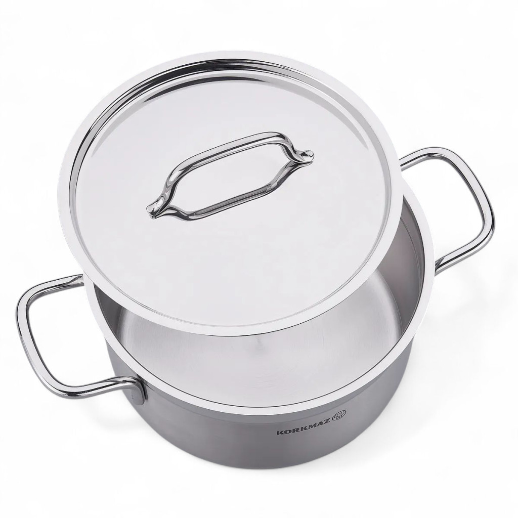 A Korkmaz Alpha lábas (24 cm / 3,5 L) praktikus, széles alappal rendelkező kialakítást kínál, amely ideális a mindennapi főzéshez. A