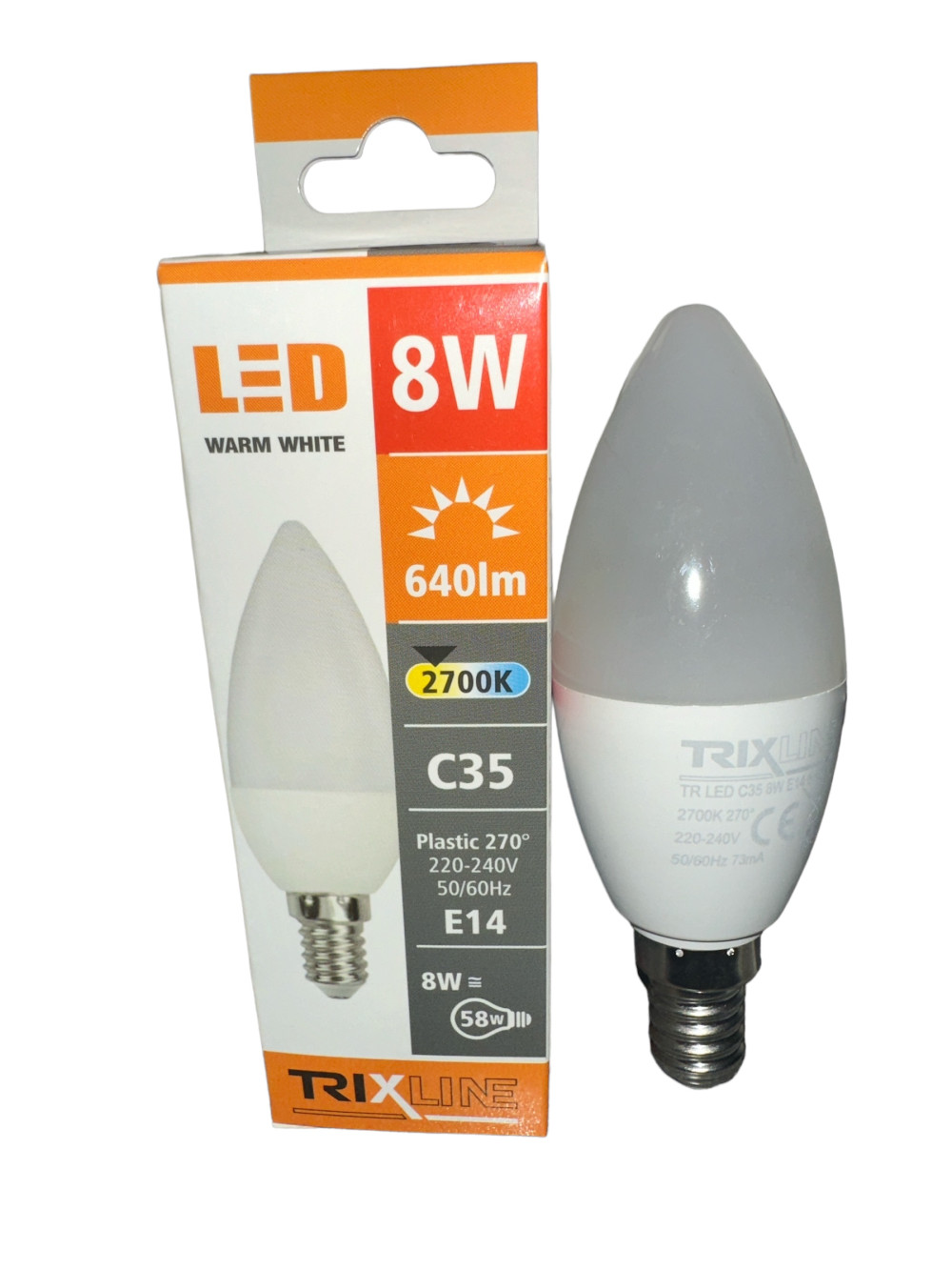 TRIXLINE LED GYERTYA IZZÓ E14 8W 640LUMEN 2700K