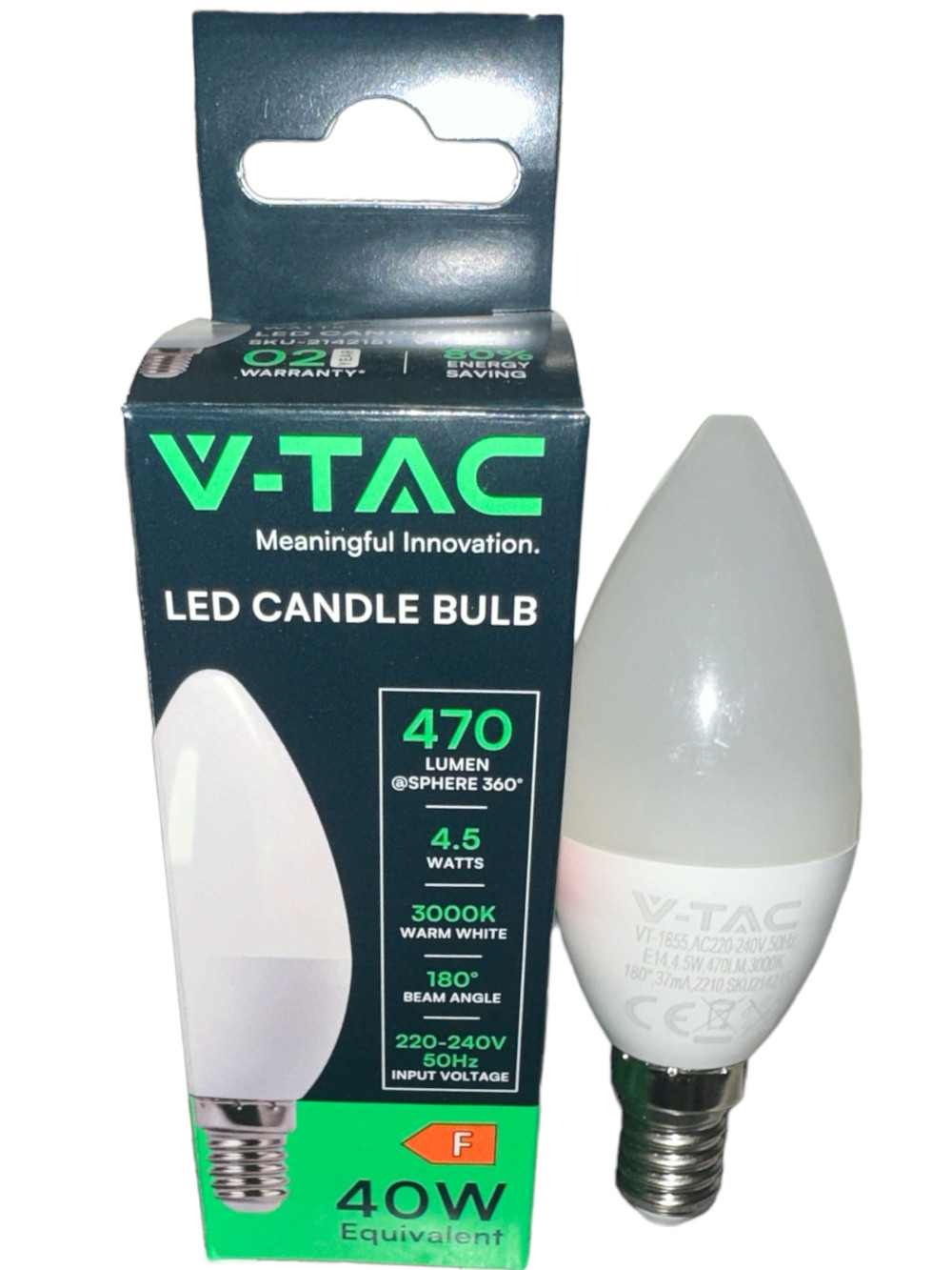 V-TAC E14 LED GYERTYA IZZÓ 4,5W, 470 LUMEN 3000K