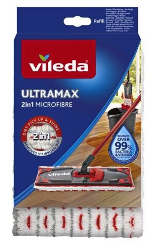 A Vileda UltraMax utántöltő könnyedén felszedi a szennyeződéseket, és csíkmentesen távolíja el a makacs foltokat is. A mikroszálas technológiának köszönhetően a padló csillogóvá válik, valamint a baktériumok és vírusok akár 99%-át is eltávolítja csak vízzel* - nincs szükség többé drága tisztítószerekre. A termék a Vileda UltraMax felmosófejjel és a Vileda 1-2 Spray felmosóval használható.