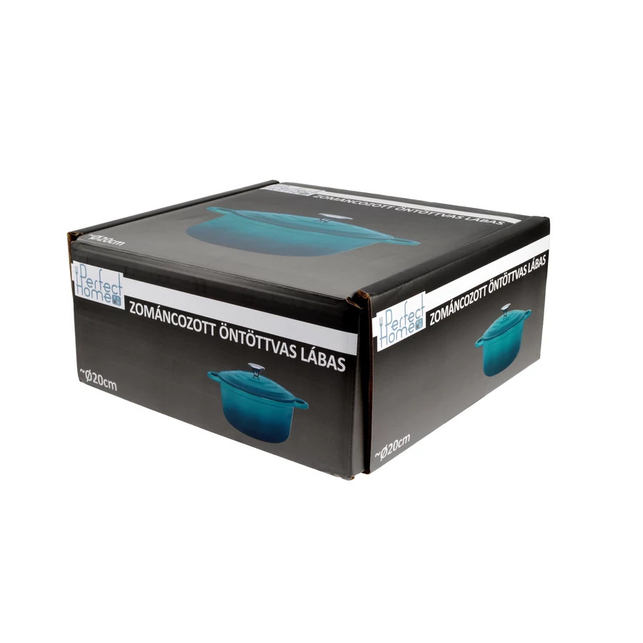 20 cm átmérő; 25,5 cm teljes szélesség fülekkel; 9 cm magas; ~14 cm magas fedővel